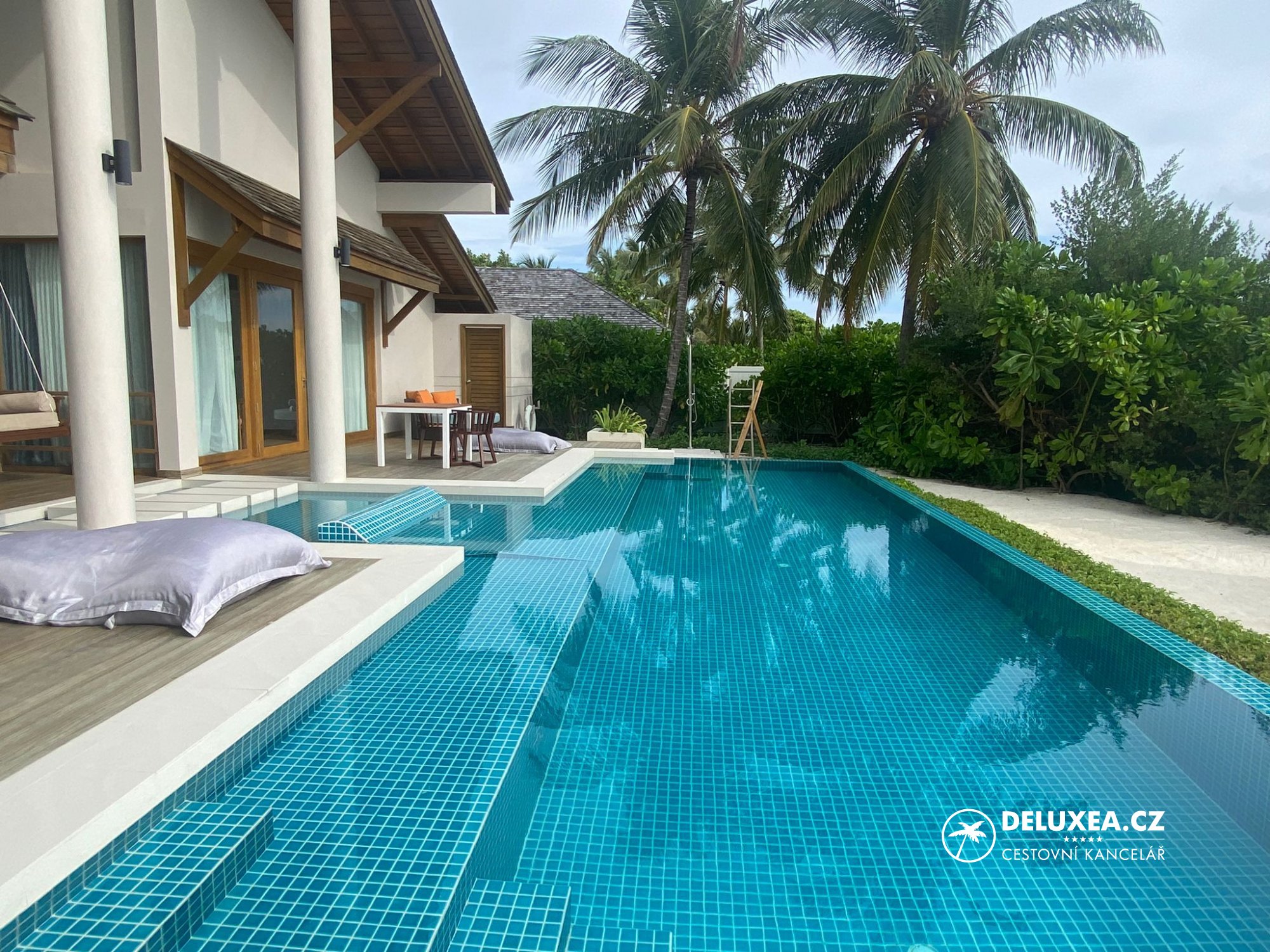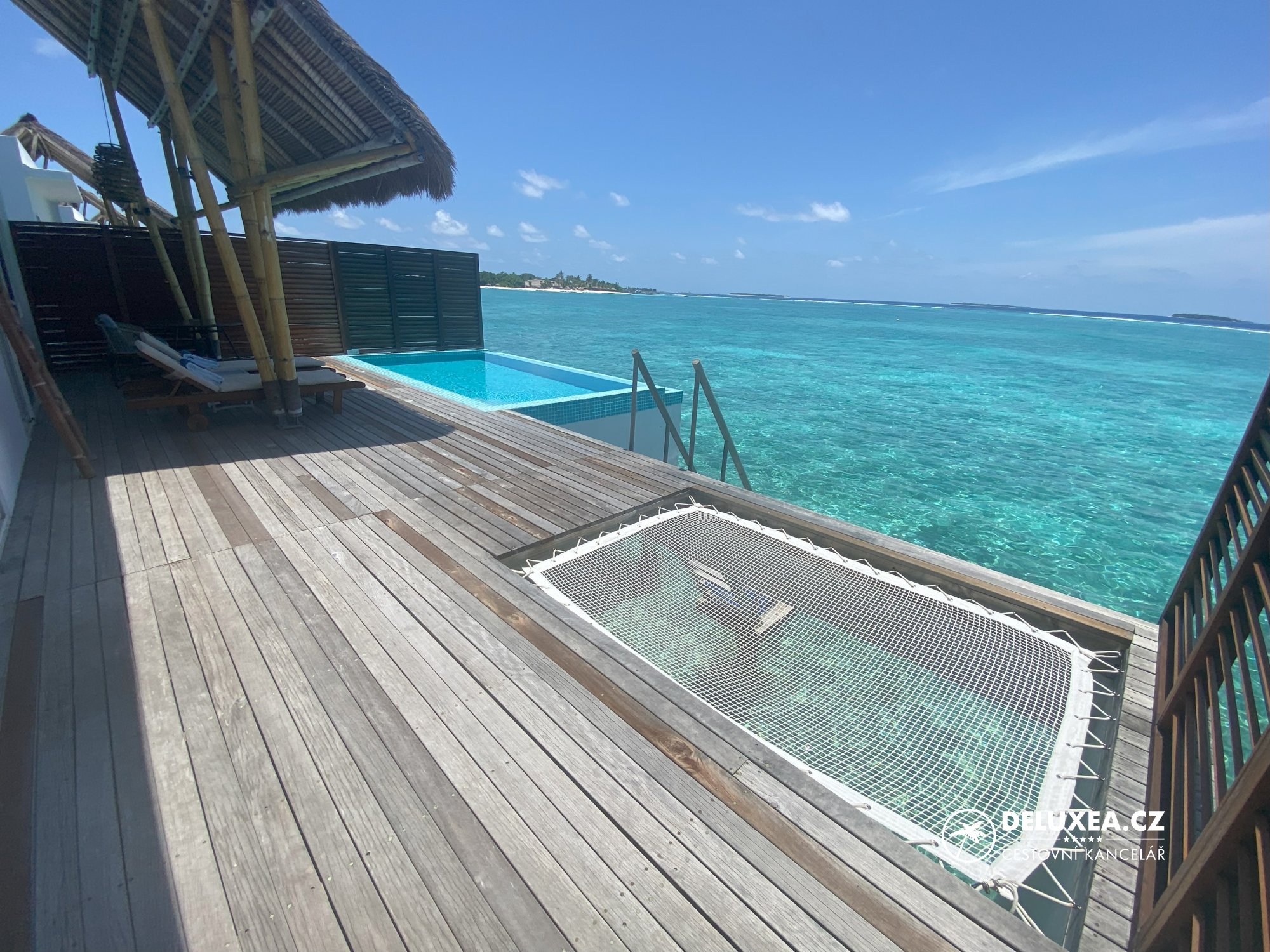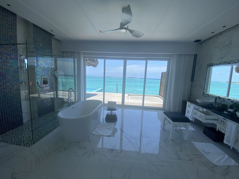 Během inspekce resortu jsme navštívili také nadvodní vilky. Stejně jako na sesterském resortu Cocoon, jsou vilky i zde rozděleny na kategorie Lagoon villa s orientací na východ a dále Lagoon Suite, Lagoon Suite with Pool a Lagoon Residence s orientací na západ. 60 nadvodních vilek nabízí moderní světlé interiéry a příjemné prostředí. Jedinou nevýhodou však může být skutečnost, že na západní straně ostrova lze spatřit nově vznikající ostrov.