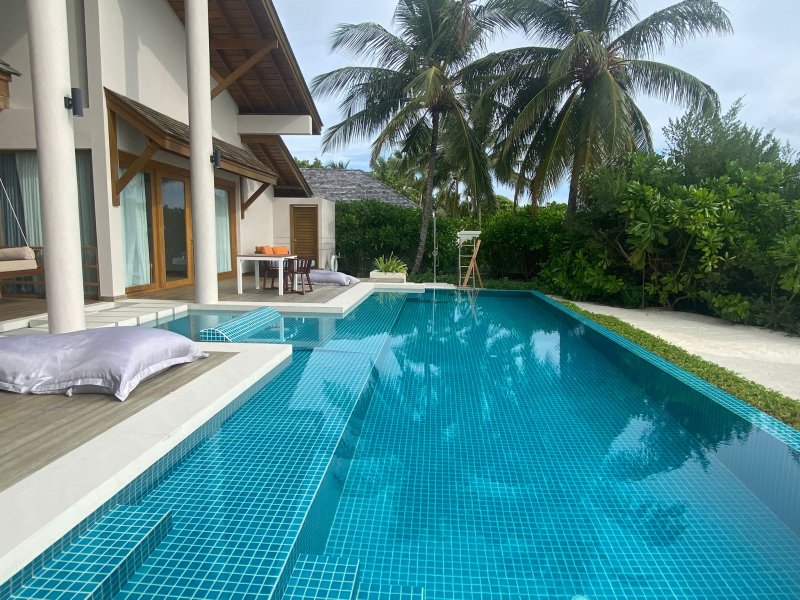 Resort dále nabízí ubytování v plážových suitách v severní části ostrova a plážových suitách s bazénem v jihozápadní části ostrova. Samostatně stojící suity poskytují prostornější ubytování, mají tmavší interiéry a zajímavě řešenou koupelnu s kruhovou vanou. Za mě jsou určitě lepší volbou suity s bazénem díky umístění v rámci resortu s dostatkem zeleně. Pro rodiny s dětmi jsou k dispozici vzájemně propojitelné plážové vilky nebo jedna plážová residence.