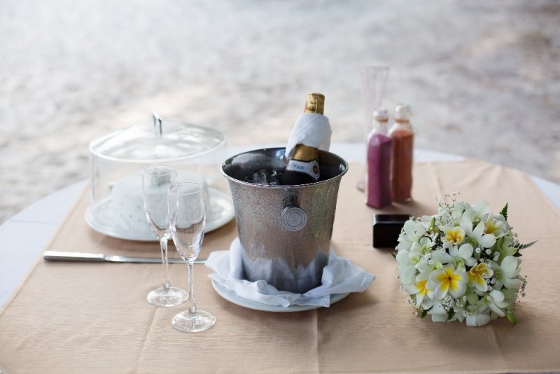 Obřad je zakončen přípitkem, následovat může focení na pláži při západu slunce. Samozřejmostí je romantická večeře při svíčkách.