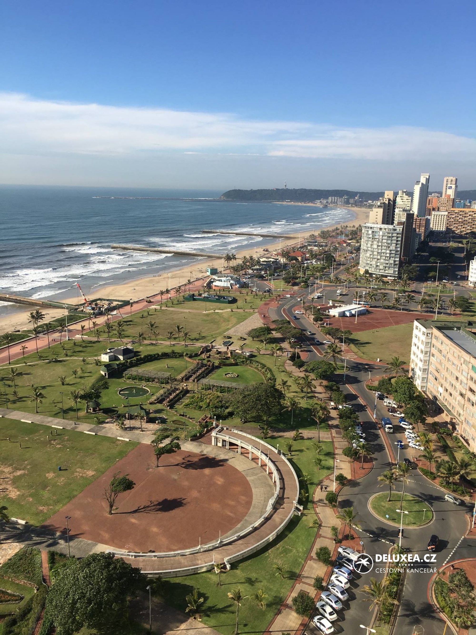 První zastávkou byl hotel Fairmont Zimbali Resort, který je vzdálený necelých dvacet minut od letiště. V hotelu jsme měli zajištěné ubytování na jednu noc. Fairmont je klidné útočiště nabízející stylové pohodlí a bezkonkurenční služby. Hotel nabízí pro své hosty řadu restaurací, wellness a fitness centrum. Pro milovníky golfu je zde Zimbali Country Club. Po prohlídce hotelu jsme se vydali do rekreační oblasti Umhlanga Rocks. Tato oblast se nachází na východním pobřeží Jižní Afriky, severně od rušného přístavního města Durbanu. Umhlanga Rocks nabízí jedno z nejlepších ubytování v Jihoafrické republice s luxusními hotely, rekreačními apartmány a to vše díky teplému Indickému oceánu. Rozhodně mohu doporučit hotel Oyster Box s výhledem na oceán, který získal několik ocenění. Po večeři v indickém stylu jsme se opět vrátili do hotelu Fairmont.