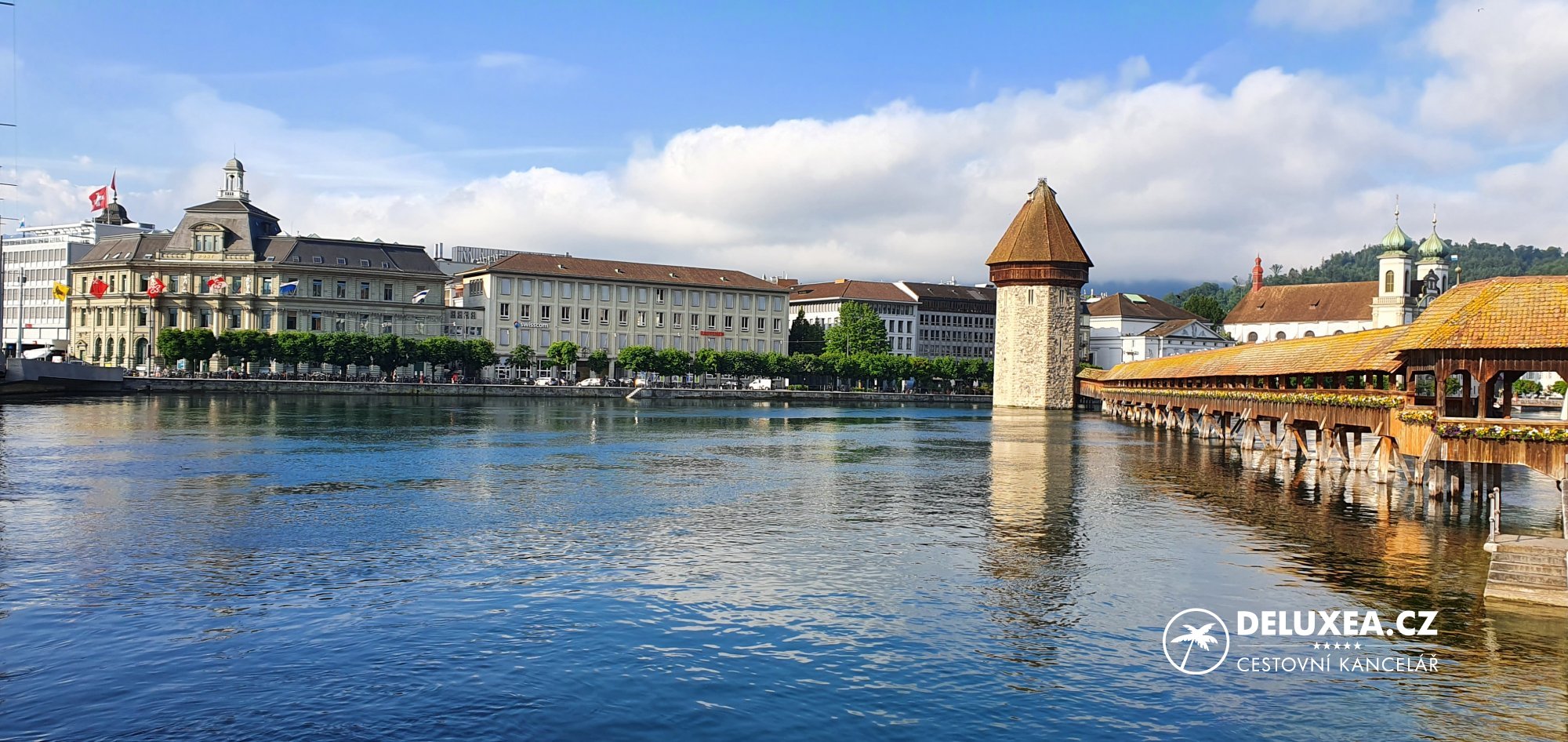Po check-inu jsem měl příležitost ke krátké procházce po městě a stihl jsem si tak prohlédnout promenádu u jezera, významný lví monument a v neposlední řadě se také projít po nejstarším dřevěném mostě na světě. Zkrátka ideální začátek služební cesty! Večer následovalo zahájení „Fam tripu“ s ostatními účastníky při večeři na venkovní terase hotelové restaurace Galerie.