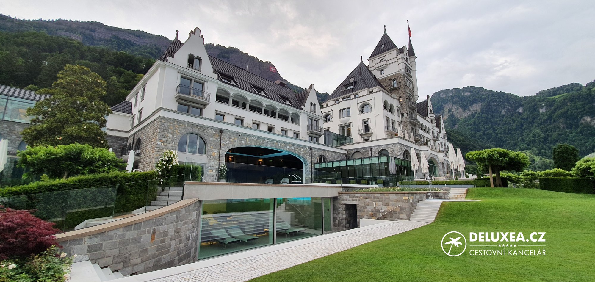 A pokud jste milovníci rostlin a květin, tak v okolí hotelu najdete rozsáhlou zahradu s flórou z celého světa, která i pod zataženou oblohou vypadá nádherně. Mnozí si pak mohou hotel spojit s filmem Youth od slavného režiséra Sorrentina, který se zde natáčel.
