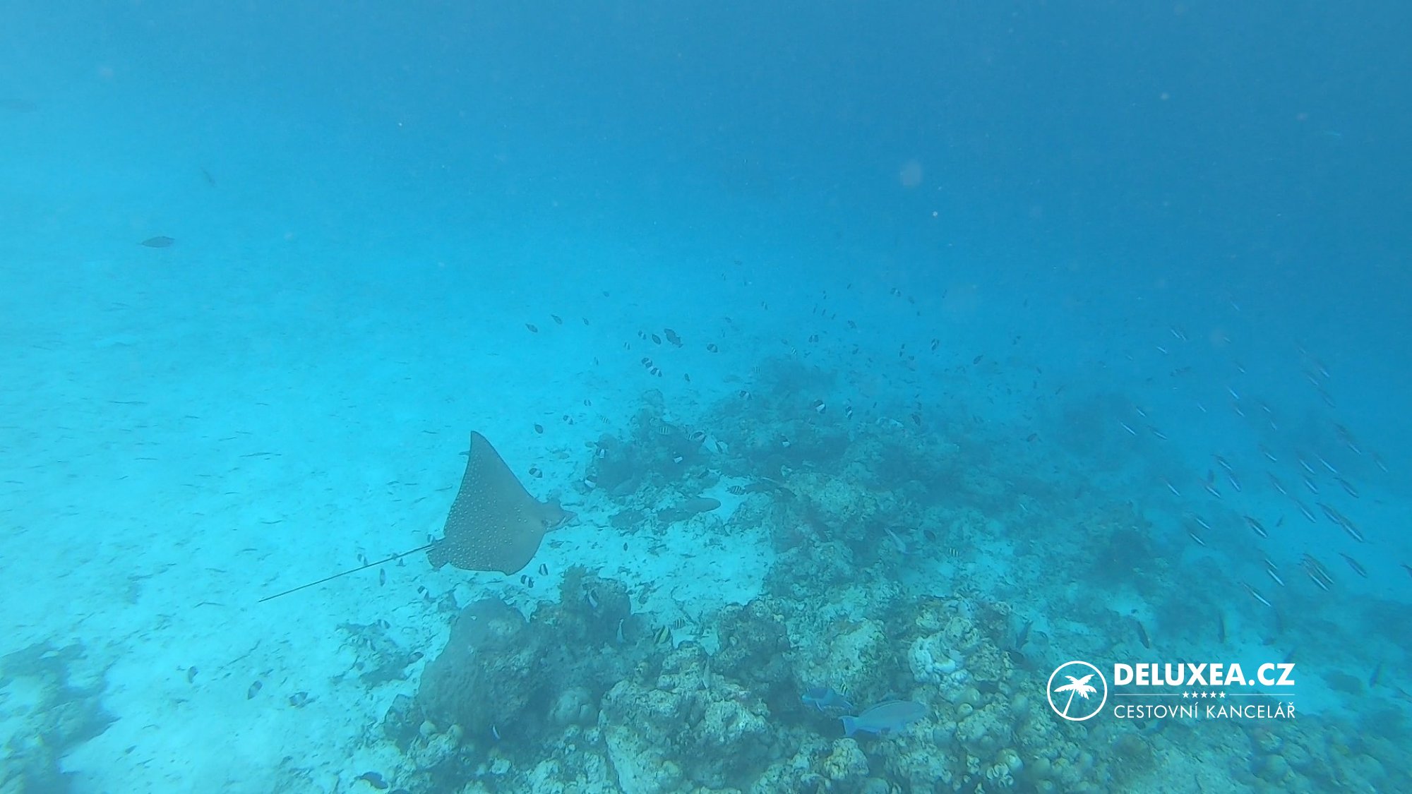 No a jak jsme tedy trávili volný čas? Každý den jsme samozřejmě nevynechali šnorchlování. Nedaleko naší vilky se nacházel korálový útes, kde bylo opravdu živo. Rybiček a dalších mořských živočichů včetně rejnoků, trnuch či korálových žraloků jsme viděli plno. Korály jsou nicméně jako všude na Maledivách pobledlé, ale pestrost podmořského života to vynahrazuje. Samozřejmě největší část jsme trávili na pláži a na terase s vlastním bazénkem, ale vyzkoušeli jsme kajaky z centra vodních sportů nebo nadvodní lázně Elizabeth Arden Spa. V hotelu je určitě co dělat, ale přesto si zachovává svůj klidný a romantický ráz. Proto je určen pouze pro dospělé a děti tedy v hotelu nemohou být ubytovány.