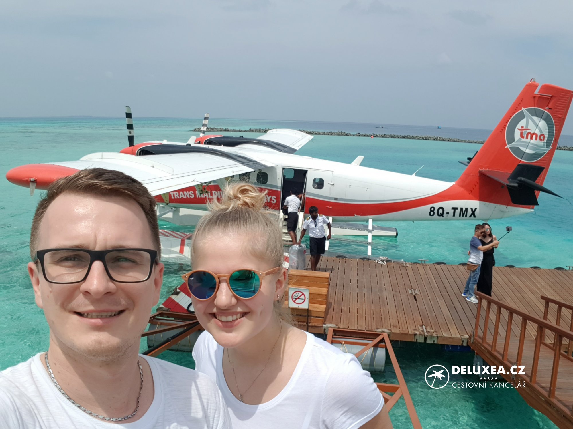 Nyní ale pěkně popořadě. Na Maledivy jsme se vydali s leteckou společností Qatar Airways, což byla moje první osobní zkušenost s „katarci“. A musím říct, že až na počáteční mírné zpoždění odletu z Prahy jsem byl maximálně spokojený. Při check-inu na letišti jsme si zkusili vyžádat „exitová“ sedadla, kde je větší prostor na nohy a vyšlo to na celou cestu na Maledivy. Takže lety byly pohodlné a navíc jídlo chutné i palubní zábava rozmanitá. Po příletu na nás čekal transfer hydroplánem, což bylo další mé „poprvé“. Ale je to opravdu zajímavý adrenalinový zážitek a velkou dávkou hluku z vrtulových motorů. Takže komu hluk vadí, určitě doporučuji špunty do uší. Ale ty výhledy na atoly a ostrůvky jsou opravdu skvostné.