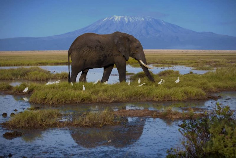 Krajina: Národní park Amboseli je proslulý svou malebnou krajinou s rozlehlými savanovými pláněmi, akáciovými lesy a bažinami. Ikonický pohled na slony potulující se na pozadí zasněženého Kilimandžára je nezapomenutelným zážitkem.