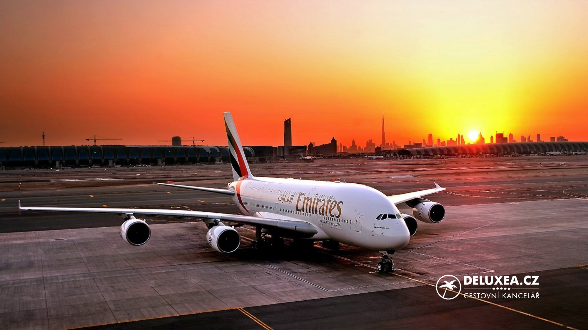 Emirates, jedna z nejmodernějších leteckých společností na světě, klade velký důraz na komfort cestujících a kvalitu služeb. Dovolená s Emirates je životní zážitek, létá s největším dopravním letadlem na světě: Airbusem A380 či Boeingem 777. Odlety z Prahy a Vídně jsou do Dubaje vypravovány každý den a na dubajském letišti v Terminálu 3 je pro přestupy cestujících z Airbusu A380 zřízeno speciální centrum, které je prvním zařízením svého druhu na světě.