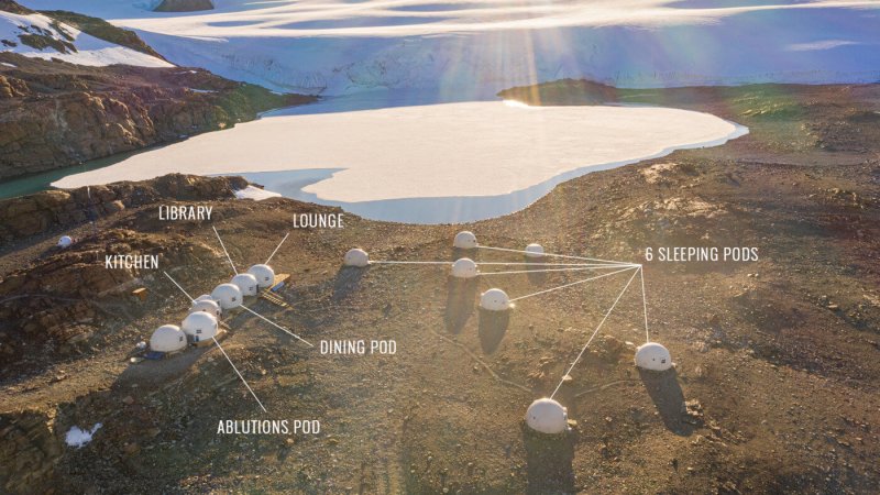 Můžete se těšit na gurmánská jídla od soukromého šéfkuchaře, saunu s výhledem na ledovec, popíjení koktejlů u ohně a nejrůznější dobrodružství, jako je výprava na jižní pól, ledolezení, túra po ledových vlnách a setkání tváří v tvář s 28 tisíci tučňáků císařských