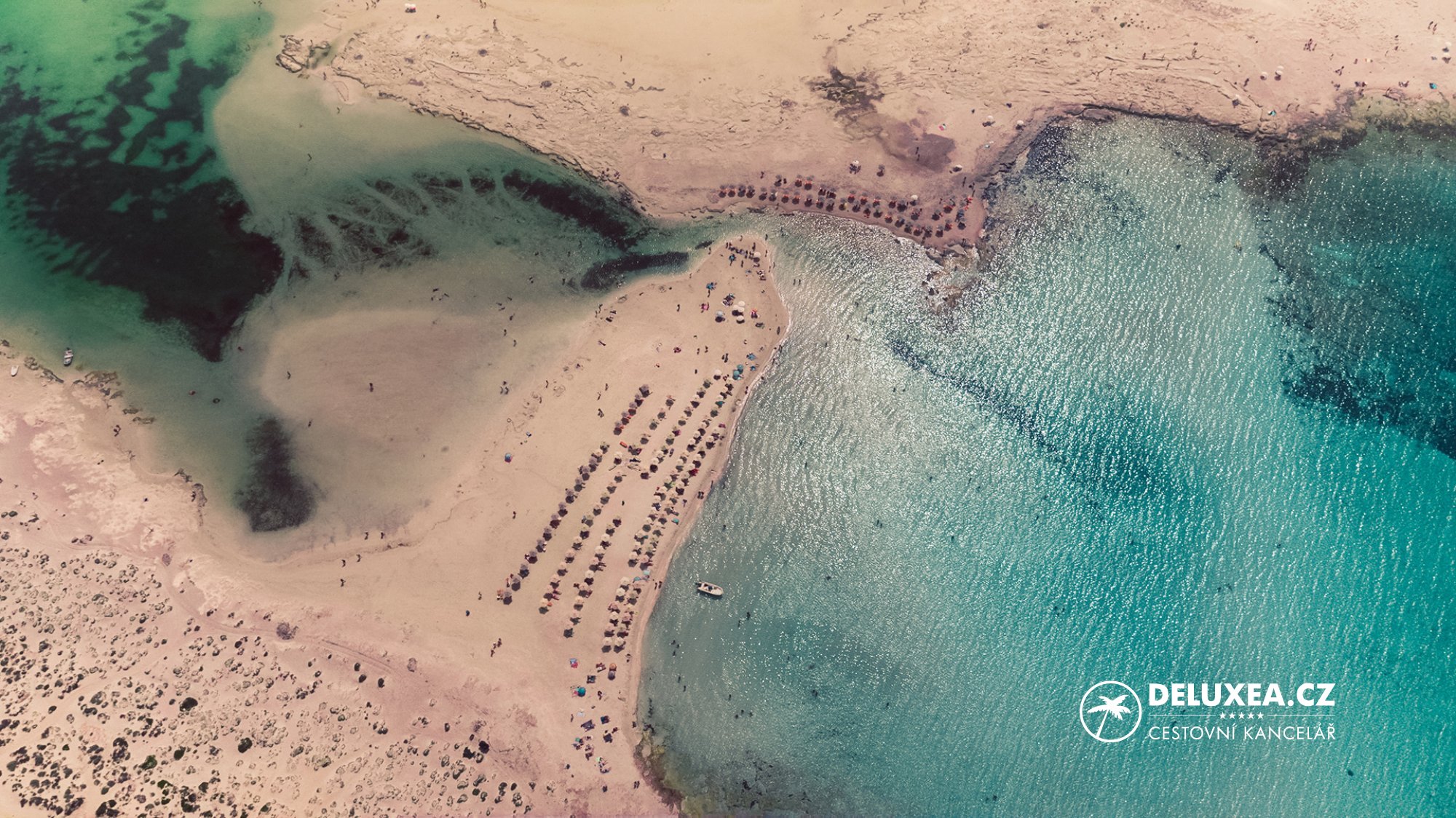 Balos Beach na severozápadě Vás okouzlí svou mělkou tyrkysovou lagunou a jemným bílým pískem, který místy získává jedinečný narůžovělý odstín. Toto výjimečné místo s výhledem na poloostrov Gramvousa patří k nejkrásnějším přírodním scenériím v Řecku.