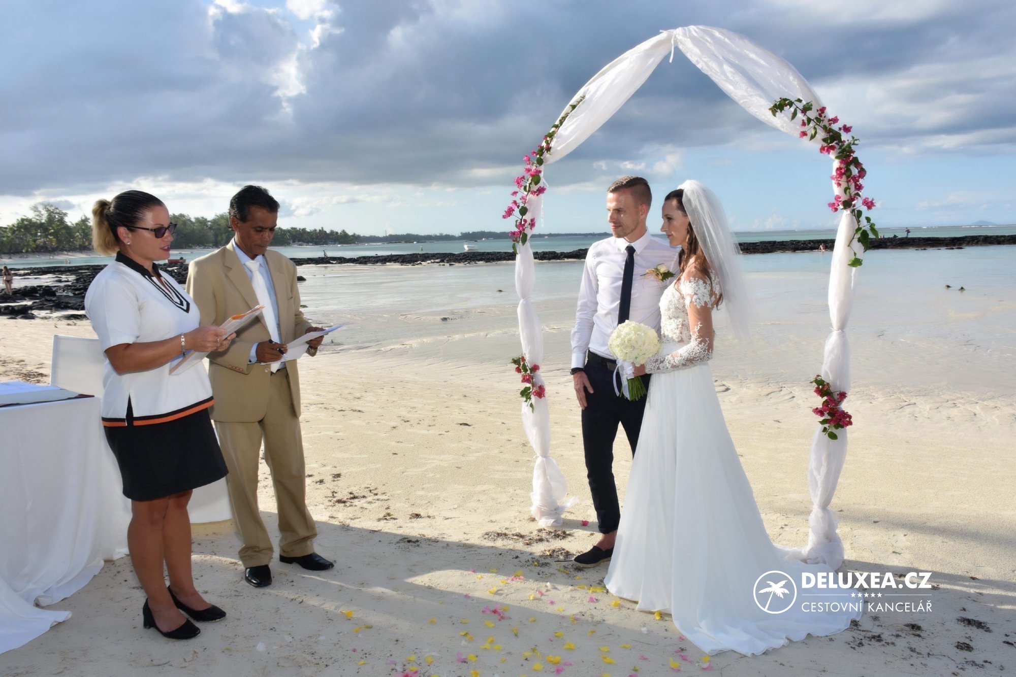 Deluxea má jako jediná česká cestovní kancelář na Mauríciu profesionální delegátky od naší místní partnerské cestovní kanceláře. Delegátka Vás doprovodí při cestě na místní matriku, pomůže Vám zajistit v hotelu vše potřebné a v neposlední řadě přetlumočí celou svatbu do Vašeho rodného jazyka. I v případě, že umíte dobře anglicky, se hodí služby delegátky využít a slyšet projev oddávajícího česky. Delegátka Vám pomůže zahnat nervozitu před svatbou a bude také prvním člověkem, který Vám pogratuluje a připije si s Vámi na spokojený společný život.